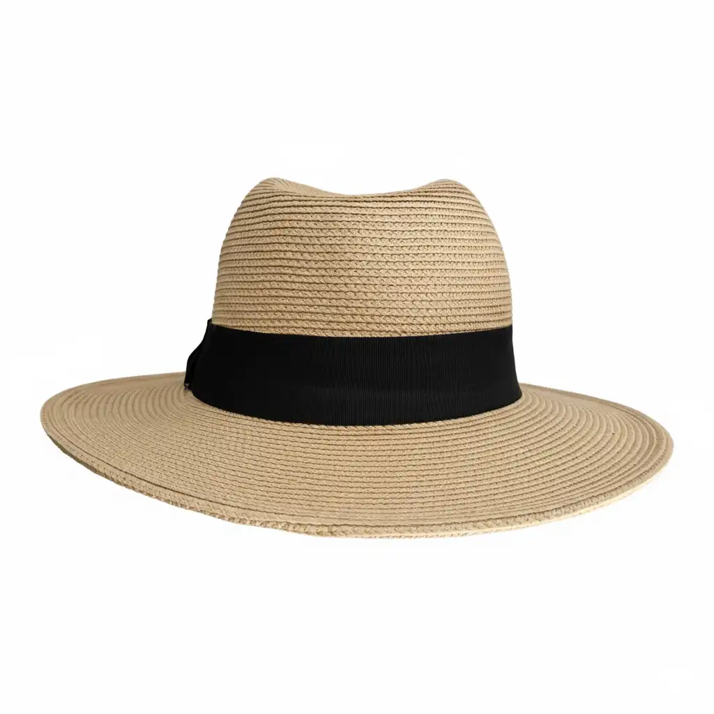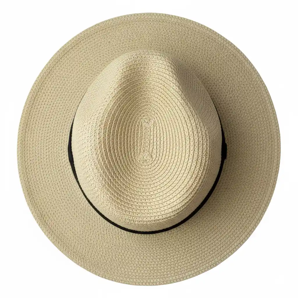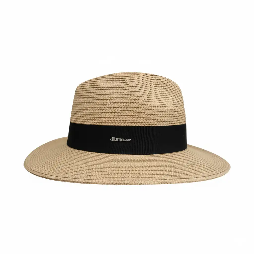 Sombrero estilo fedora con protección UPF 50+ y listón negro decorativo. Elegante, ligero y cómodo para un uso prolongado mientras protege tu piel del sol.