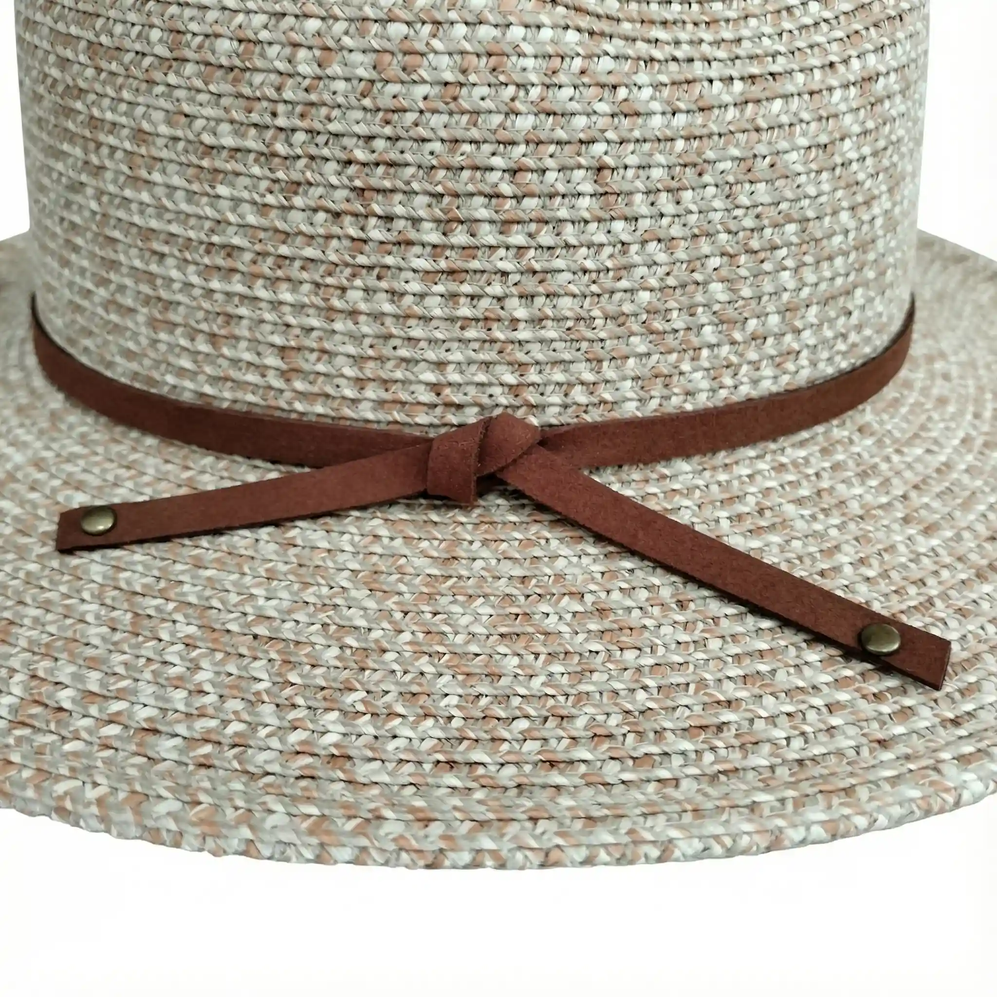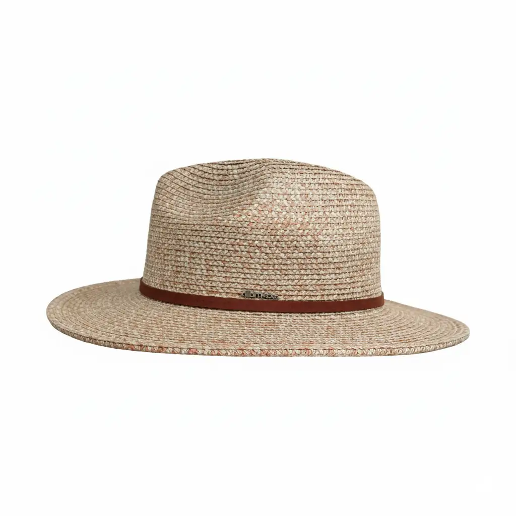 Estilo fedora casual en tono trigo con banda de piel vegana. Ventilado, fresco y con protección solar UPF 50+ para disfrutar el verano con estilo.