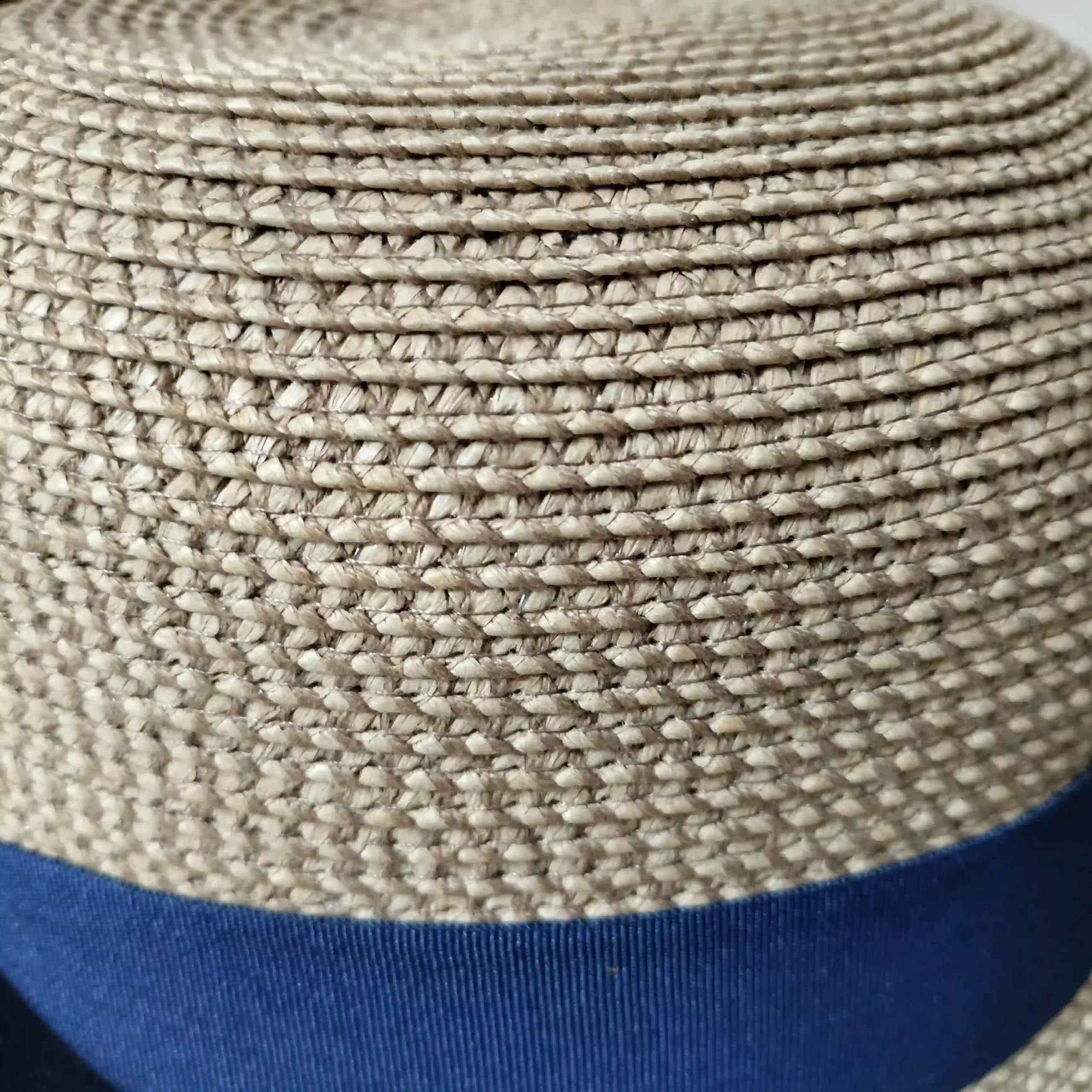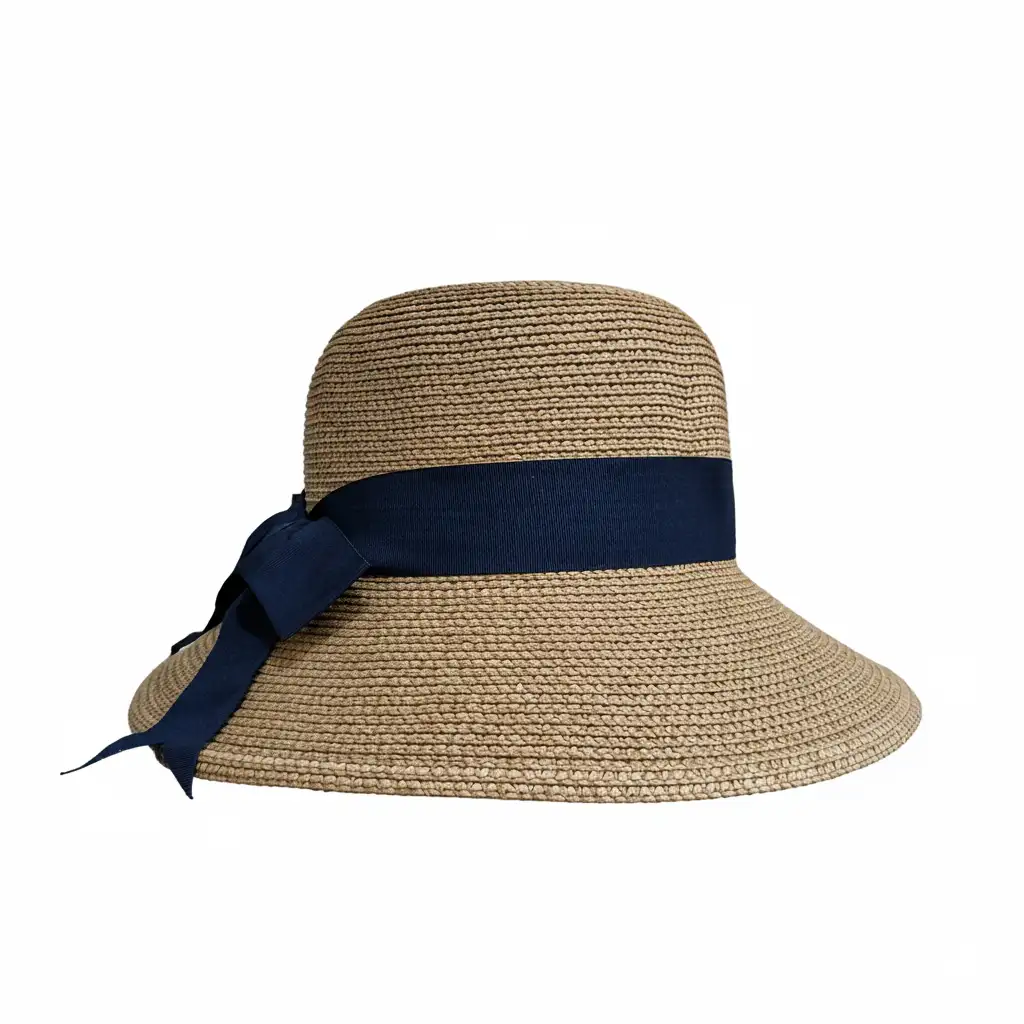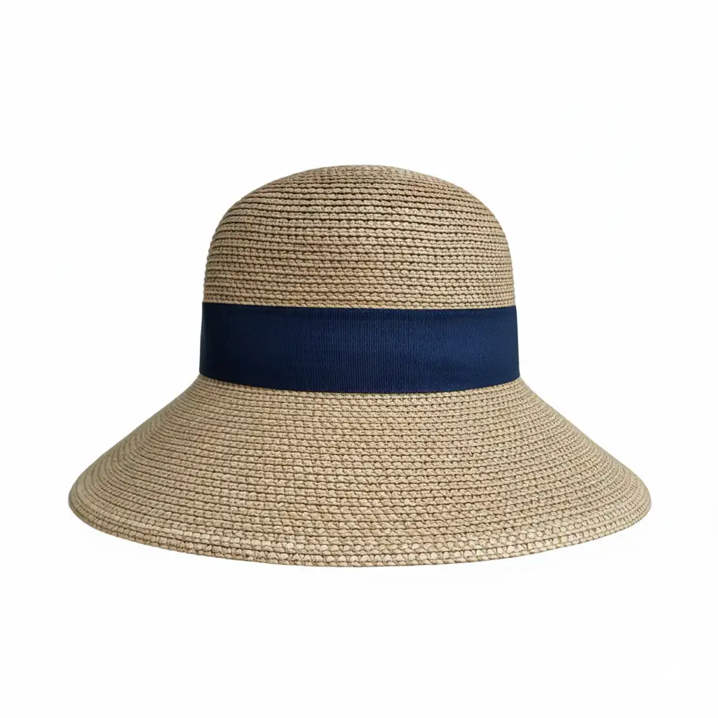 Elegancia y protección solar en cada detalle. Sombrero de ala ancha inclinada con banda azul decorativa, ligero y perfecto para lucir elegante en cualquier ocasión.