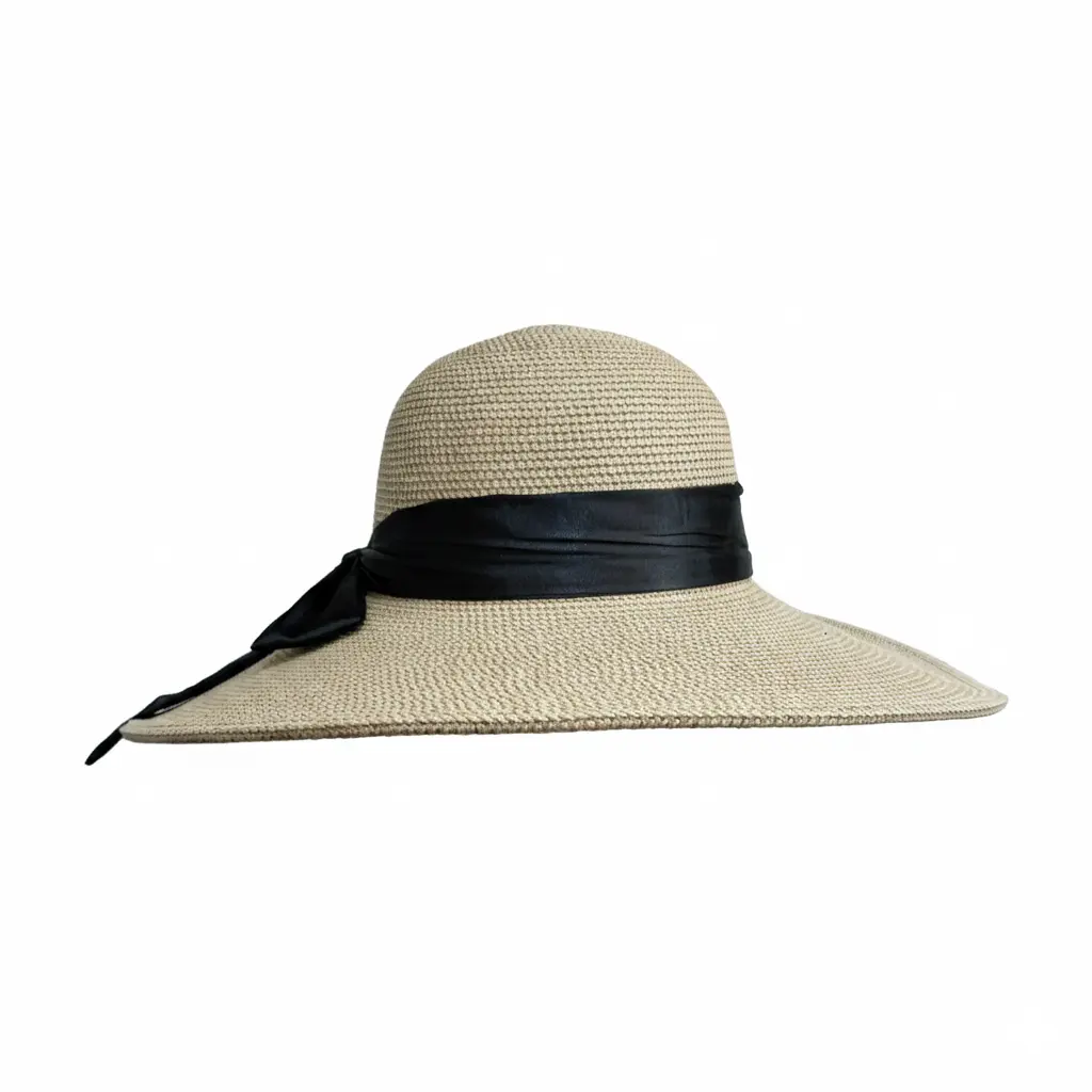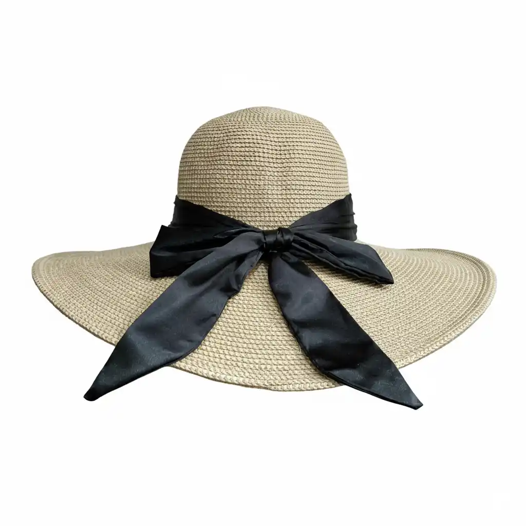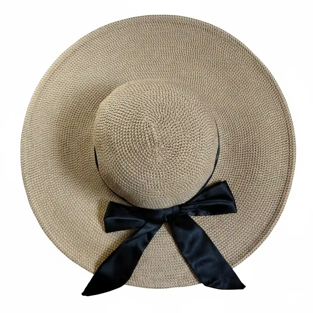 Elegante sombrero de ala ancha con moño decorativo y certificación UPF 50+. Protege tu piel mientras te ves impecable en cualquier ocasión.