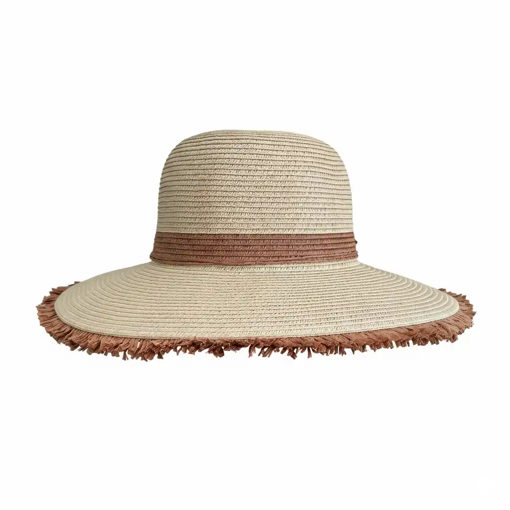 Estilo pamela con ala ancha de 10 cm y certificación UPF 50+. Diseño sencillo con detalles únicos que reflejan frescura mientras protegen tu piel del sol.